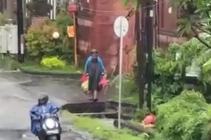 Aksi staf KPU Kabupaten Badung yang membuang sampah ke sungai depan kantor setempat terekam kamera amatir hingga viral di Medsos. (BP/istimewa)