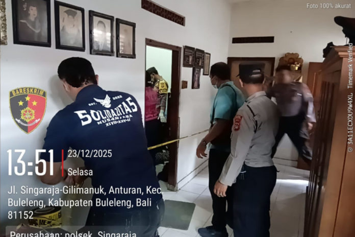 Kasi Humas Polres Buleleng IPTU Yohana Rosalin Diaz menjelaskan, laporan berawal dari kecurigaan warga karena korban tidak terlihat keluar kamar selama dua hari berturut-turut. “Sekitar pukul 12.45 WITA, saksi Made Sukiada menerima telepon dari adiknya yang menyampaikan bahwa korban sudah dua hari tidak terlihat keluar dari kamarnya,” jelas Iptu Yohana.