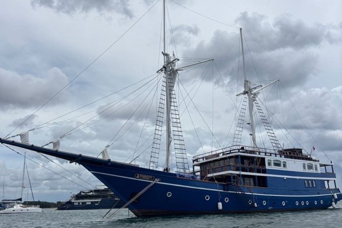 DENPASAR, BALIPOST.com – Hujan lebat disertai angin kencang mengakibatkan gelombang besar di perairan Serangan, Denpasar Selatan. Dampak cuaca ekstrem tersebut membuat kapal pinisi Sharandy of De Seas tenggelam dihantam ombak dan angin kencang saat lego jangkar di seputaran Pelabuhan Serangan, Sabtu (27/12).