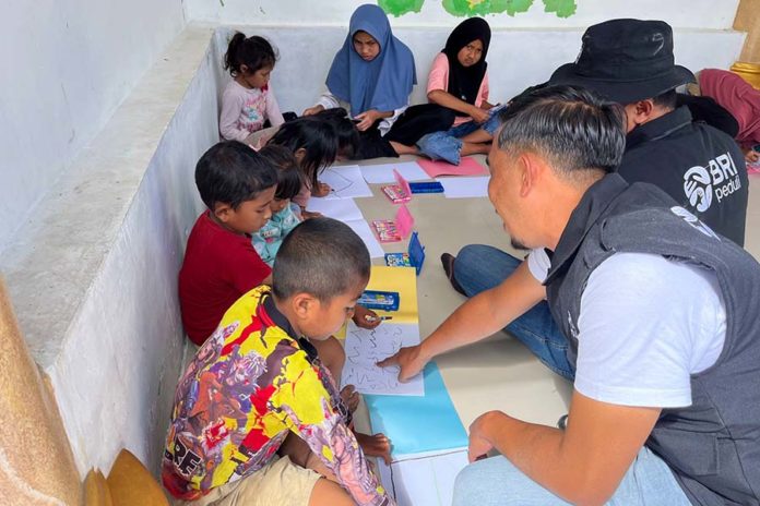 BRI terus mempertegas komitmennya dalam fase pemulihan masyarakat terdampak bencana melalui program Trauma Healing bagi anak-anak di sejumlah wilayah terdampak bencana banjir bandang Sumatera. (BP/HO-BRI)