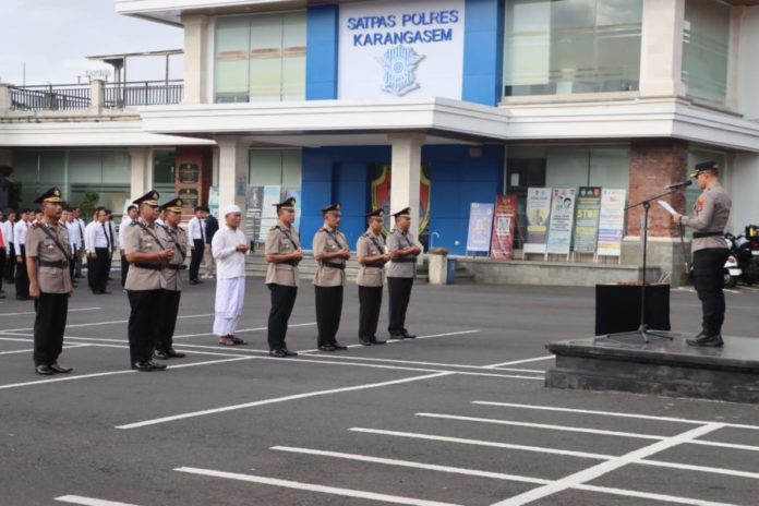 Upacara sertijab sejumlah PJU Polres Karangasem, Senin (5/1). (BP/istimewa)