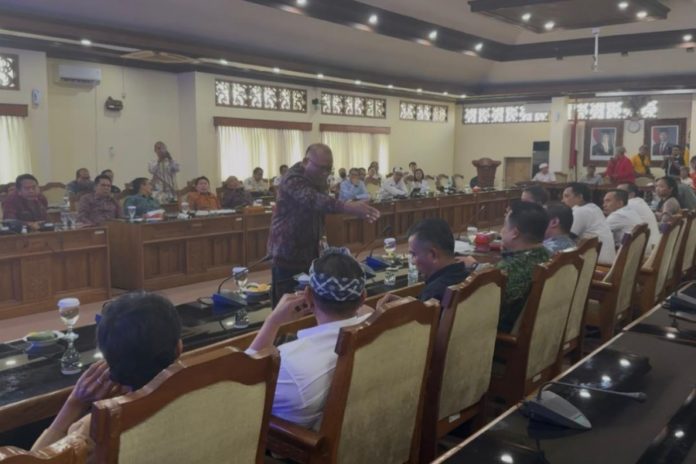 DENPASAR, BALIPOST.com – Rapat Dengar Pendapat (RDP) antara Panitia Khusus Tata Ruang, Aset, dan Perizinan (Pansus TRAP) DPRD Bali dengan PT Jimbaran Hijau berlangsung alot dan tegang di Kantor DPRD Bali, Rabu (7/1). RDP yang dimulai pukul 10.30 WITA dan berakhir sekitar pukul 14.05 WITA itu berujung pada pengusiran perwakilan PT Jimbaran Hijau dari ruang rapat.