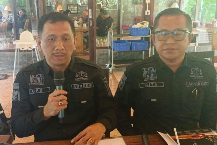I Gede Pasek Suardika dan I Kadek Cita Ardana Yudi, saat memberikan keterangan terkait praperadilan penetapan tersangka Kepala Kantor Wilayah BPN Provinsi Bali, I Made Daging, A.Ptnh., M.H. (BP/istimewa)