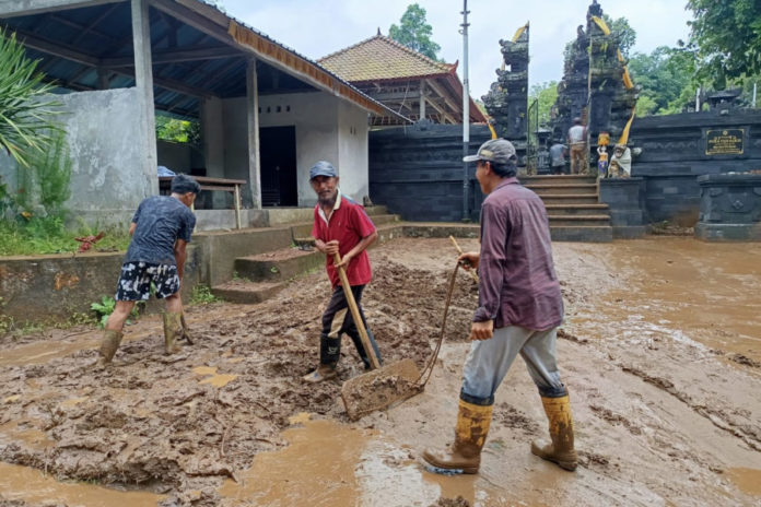 Usai kejadian, krama adat langsung dikerahkan untuk bergotong royong membersihkan area pura. Ketebalan lumpur yang terbawa arus bahkan mencapai setinggi lutut orang dewasa.
