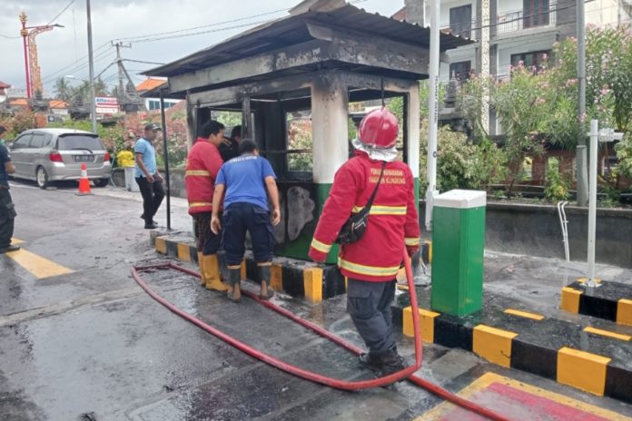 Kondisi pos tiket parkir di RSUD Klungkung yang terbakar, Jumat (16/1). (BP/Istimewa)