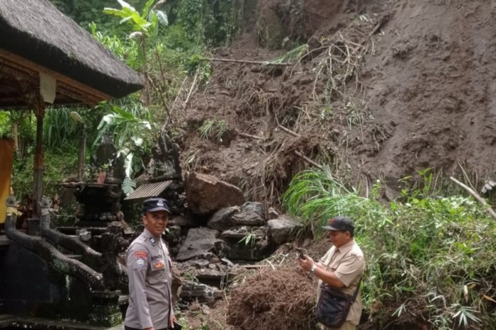 SEMARAPURA, BALIPOST.com – Pura Manik Tirta yang berlokasi di Dusun Kawan, Desa Timuhun, Kabupaten Klungkung, diterjang longsor. Peristiwa tersebut diketahui terjadi pada Senin (19/1) setelah dilaporkan oleh warga setempat kepada pihak desa.