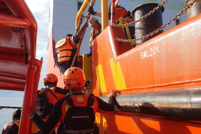 DENPASAR, BALIPOST.com – Tim SAR gabungan melakukan evakuasi medis terhadap kru Kapal LC Astrolabe yang mengalami masalah kesehatan di Perairan Selat Badung pada Senin pagi (19/1).