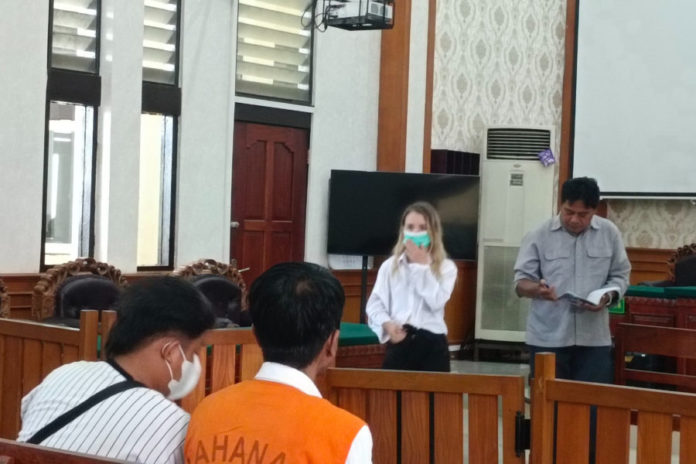 Terdakwa (rambut pirang) usai sidang pledoi di PN Denpasar.(BP/asa)