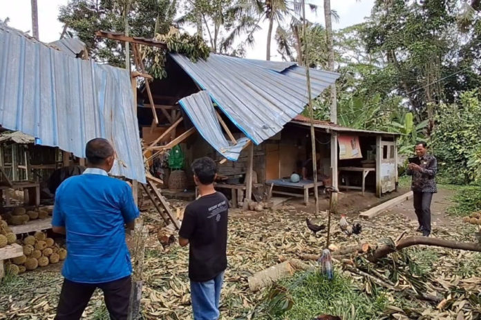 Kondisi gudang rusak tertimpa pohon durian tumbang. (BP/Ina)