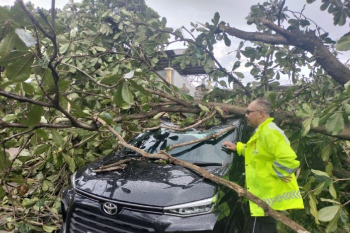 Kasi Humas Polresta Denpasar Iptu I Gede Adhy Saputra Jaya, menjelaskan pemilik mobil, Kadek Juni Armawa. Peristiwa tersebut terjadi saat hujan disertai angin kencang.
