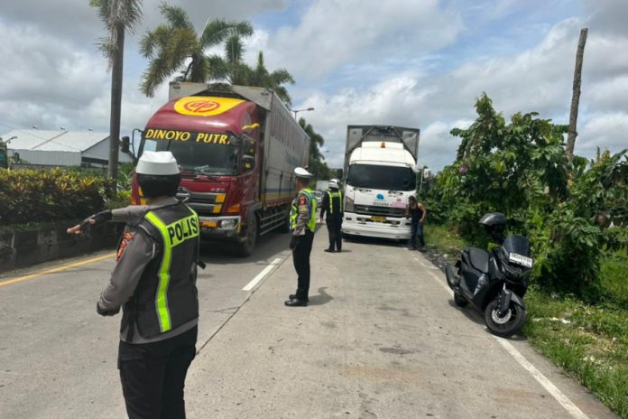 Kasatlantas Polres Badung, AKP Ni Luh Tiviasih melakukan penertiban truk parkir di Jalan Terminal Mengwi. (BP/istimewa)