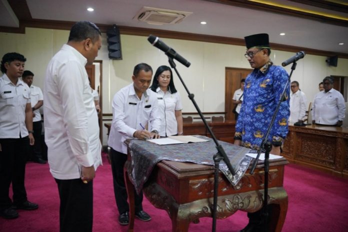 Bupati Gianyar melantik I Nyoman Tri Budi Artanto, S.Pt., sebagai Kepala Dinas Sosial (Kadis Sosial) Kabupaten Gianyar, Rabu (21/1).(BP/istimewa)
