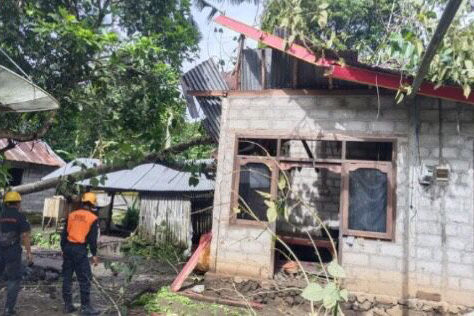 Salah satu rumah warga yang tertimpa pohon di Kabupaten Karangasem. (BP/istimewa)