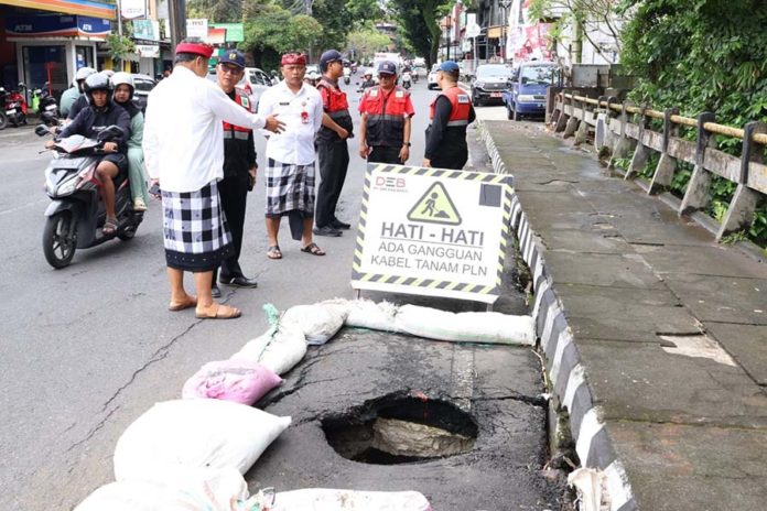 “Kami langsung cek ke lapangan. Dari pemerintah daerah tentu akan berkoordinasi dengan Pemerintah Provinsi Bali agar segera bisa ditindaklanjuti. Jika dibiarkan, kerusakan bisa semakin melebar. Ketinggian jalan dengan sungai di bawahnya cukup tinggi dan ini sangat membahayakan pengendara yang melintas,” ujarnya, Jumat (23/1).