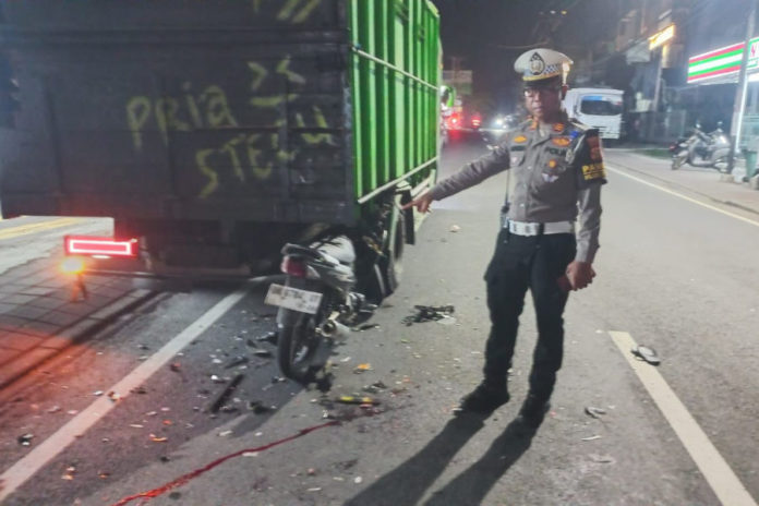 KB kurang hati-hati dan menabrak bagian belakang kanan truk. “Kecelakaan itu terjadi karena pengendara sepeda motor (KB) diduga kurang hati-hati dan dalam pengaruh alkohol,” ujarnya.
