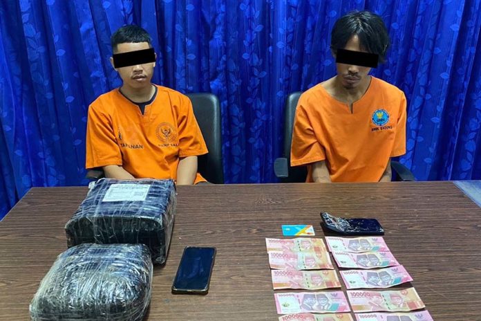 Pengedar ganja, SP dan GON ditahan di BNNP Bali setelah dibekuk di wilayah Sambangan serta Candikuning. (BP/istimewa)
