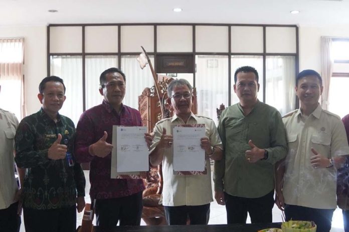Penandatangan MoU Pemkab Jembrana dalam upaya kerjasama pemenuhan air bersih di PPN Pengambengan dan Mendoyo, Selasa (27/1). (BP/istimewa)
