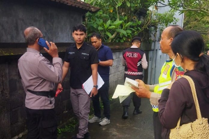 Personel Polsek Gianyar melakukan penyelidikan kasus curanmor di Kelurahan Abianbase, Gianyar, Kamis (29/1).(BP/istimewa)