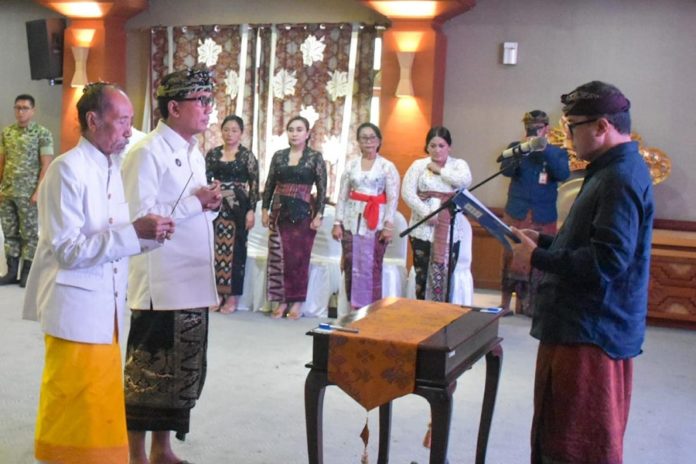 Wali Kota Denpasar, I Gusti Ngurah Jaya Negara saat melantik I Gusti Ngurah Eddy Mulya menjadi Sekretaris Daerah (Sekda) Kota Denpasar di Graha Sewakadarma Kota Denpasar, Jumat (30/1). (BP/Istimewa)