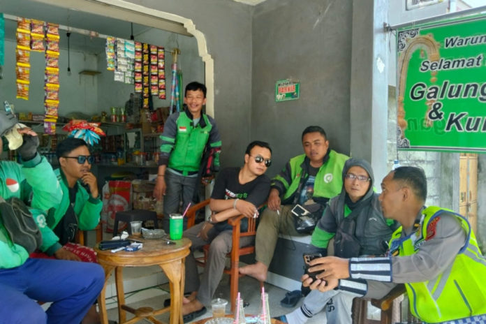 Subsatgas Dikmas Polres Gianyar edukasi komunitas pengemudi ojol di wilayah Kabupaten Gianyar guna menekan angka kecelakaan di jalan raya, Rabu (4/2).(BP/istimewa)