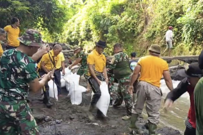 GIANYAR, BALIPOST.com – Semangat kebersamaan terpancar jelas di Desa Lebih, Kecamatan Gianyar, Kamis (5/2). Puluhan personel gabungan dari Polsek Gianyar, Koramil 01/Gianyar, bersama perangkat desa dan warga setempat bahu-membahu melaksanakan aksi gotong royong untuk memperbaiki Bendungan Tukad Sangsang yang mengalami kerusakan serius akibat tergerus aliran sungai.