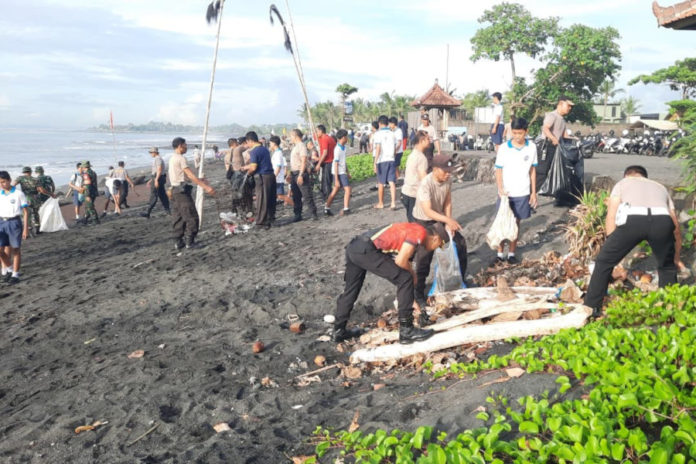 Aksi bersih sampah di pesisir Pantai Purnama, Desa Sukawati, Kamis (5/2). (BP/istimewa)