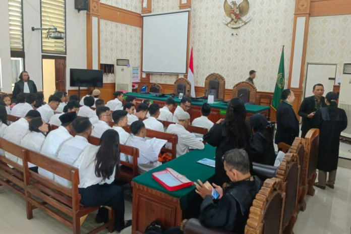 DENPASAR, BALIPOST.com – Sebanyak 38 orang terdakwa yang terbagi dalam lima berkas kasus manipulasi, penciptaan, perubahan penghilangan pengrusakan Informasi Elektronik dan atau Dokumen Elektronik dengan tujuan agar Informasi Elektronik dan atau Dokumen Elektronik tersebut dianggap seolah-olah data yang otentik sebagaimana dimaksud dalam Pasal 35 Jo Pasal 51 Ayat (1) Undang-Undang Republik Indonesia Nomor 11 Tahun 2008 tentang Informasi Elektronik Dan Tranksaksi Elektronik Jo Pasal 20 huruf a, c Undang-Undang Nomor 1 Tahun 2023 Tentang KUHP, Kamis (5/2) diberikan kesempatan melakukan pembelaan.