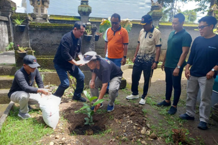 Bawaslu Kabupaten Jembrana saat luncurkan program Beraksi yang ditandai dengan penanaman pohon manggis di halaman kantor, Jumat (6/2). (BP/istimewa)
