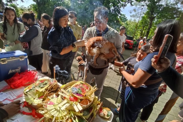 Vaksinasi HPR bertepatan dengan perayaan Tumpek Uye pada Sabtu (7/2), di parkir utara Taman Kota Lumintang. (BP/istimewa)