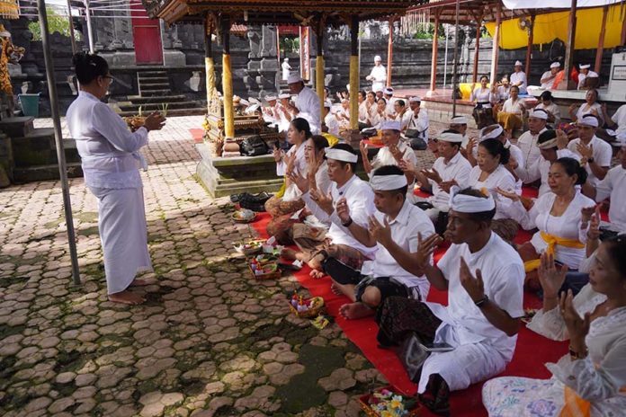 Persembahyangan perayaan hari Tumpek Uye di Jembrana dipusatkan di Pura Dangkhayangan Jati.(BP/Istimewa)