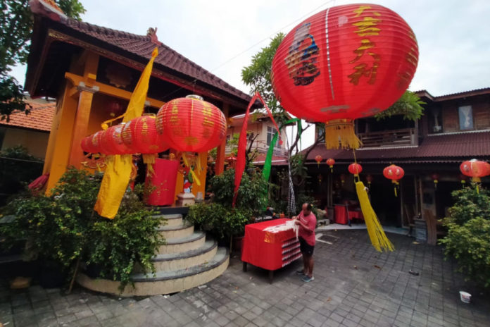 DENPASAR, BALIPOST.com – Menjelang perayaan hari raya Imlek 2577 Kongzili yang jatuh pada 17 Februari 2026, suasana khas Tahun Baru Tionghoa mulai terasa di kawasan Jalan Kartini hingga Jalan Gajah Mada, Denpasar. Sejak Minggu (8/2), warga setempat secara bergotong royong memasang ratusan lampion merah yang membentang di sepanjang ruas jalan tersebut.