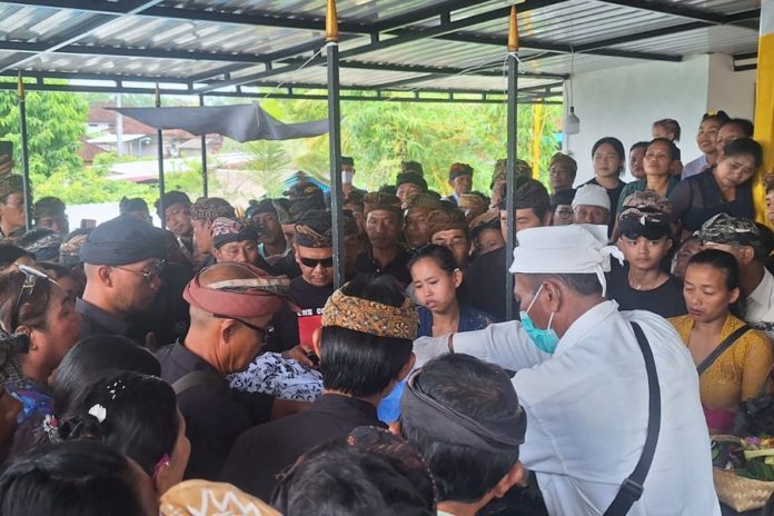 Upacara pengabenan dilaksanakan di Krematorium Pitra Puja Puspa, Dusun Pau, Desa Tihingan, Kecamatan Banjarangkan. Prosesi tersebut dihadiri keluarga besar, kerabat, serta warga setempat. Tangis istri korban, Ni Kadek Ayu Serla Dewi, pecah saat jenazah diturunkan dari mobil ambulans.