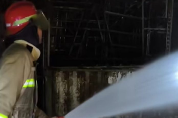 Beberapa menit kemudian 11 mobil pemadam tiba di TKP. Petugas langsung memadamkan api. “Untuk sumber api, menurut saksi dari instalasi kelistrikan kemukinan diduga korslet sehingga menyebabkan ledakan dan percikan api,” tegas Iptu Adi.
