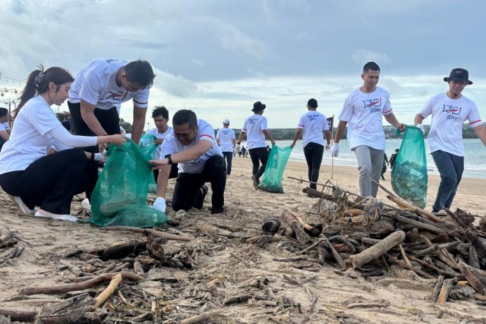 Insan BRILiaN BRI Region 17 Denpasar bersama masyarakat turut ambil bagian dalam kegiatan Korve/Kerja Bakti pembersihan sampah pantai yang dilaksanakan di Pantai Kedonganan, Badung. (BP/HO-BRI)