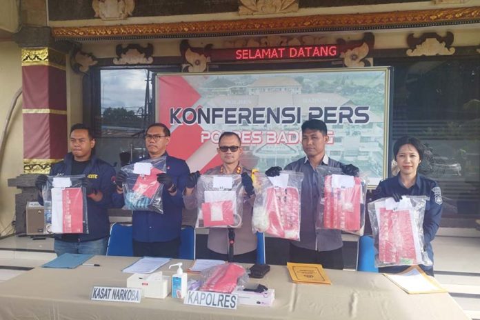 MANGUPURA, BALIPOST.com – Kapolres Badung, AKBP Joseph Edward Purba merilis pengungkapan kasus narkoba dalam sebulan terakhir, Kamis (12/2). Dari pengungkapan kasus tersebut, ditangkap delapan pelaku dan disita barang bukti senilai Rp290.671.000.