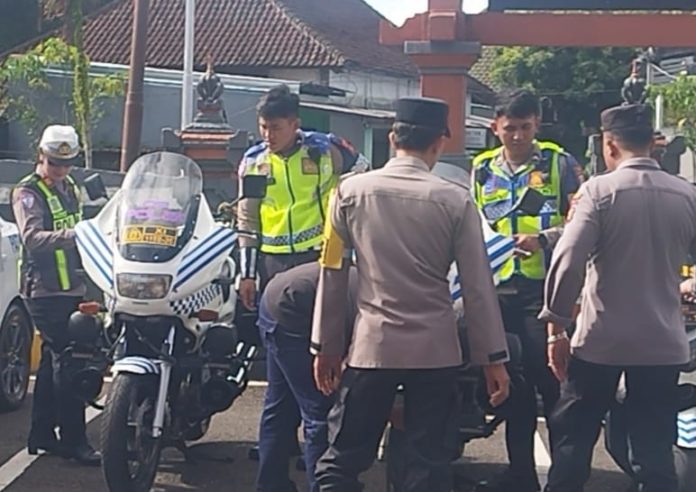 Pengecekan kondisi kendaraan dinas Satlantas Polres Badung yang dilakukan di halaman Mapolres Badung, Kecamatan Mengwi. (BP/istimewa)