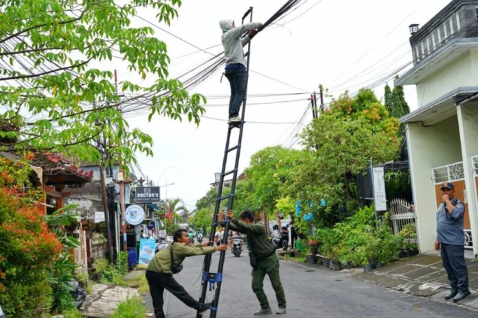 Pemerintah Desa Tegal Harum, Denpasar Barat menata kabel udara, khususnya kabel provider di wilayahnya. (BP/Istimewa)