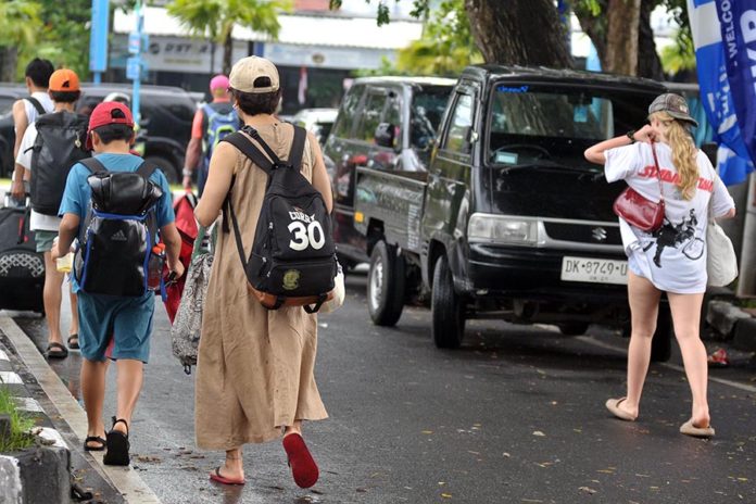 Sejumlah wisatawan mancanegara berada di kawasan Sanur, Denpasar. Gubernur Bali, Wayan Koster, menyoroti maraknya usaha rental sepeda motor hingga pengelolaan akomodasi berbasis digital seperti Airbnb yang banyak dimiliki warga negara asing (WNA). (BP/eka)