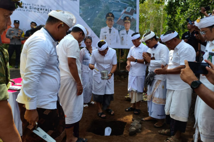 Peletakan batu pertama pertanda dimulainya penataan kawasan Titik Nol Kota Singaraja.(BP/yud)