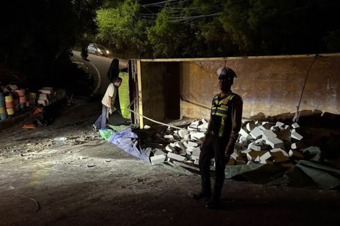 Selain itu dilakukan pembersihan bata ringan yang berserakan di badan jalan. “Tidak ada korban luka, hanya material saja,” ujarnya.