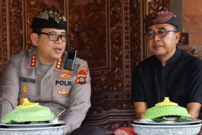 Untuk menjaga situasi aman dan kondusif jelang Nyepi, Kapolresta Denpasar Kombes Pol. Leonardo David Simatupang menemui Pengelingsir Puri Agung Jro Kuta, IGN Jaka Pratidnya yang akrab dipanggil Turah Joko. (BP/istimewa)