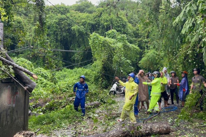 SEMARAPURA, BALIPOST.com – Pohon tumbang akibat hujan deras dan angin kencang yang melanda wilayah Nusa Lembongan sejak sehari sebelumnya, menyebabkan akses jalan utama warga sempat tertutup total. Anggota Polsubsektor Lembongan merespons cepat dalam penanganan pohon intaran tumbang di Jalan Tanjakan/Pupuan, Desa Jungutbatu, Kecamatan Nusa Penida, Kabupaten Klungkung, Selasa (24/2).