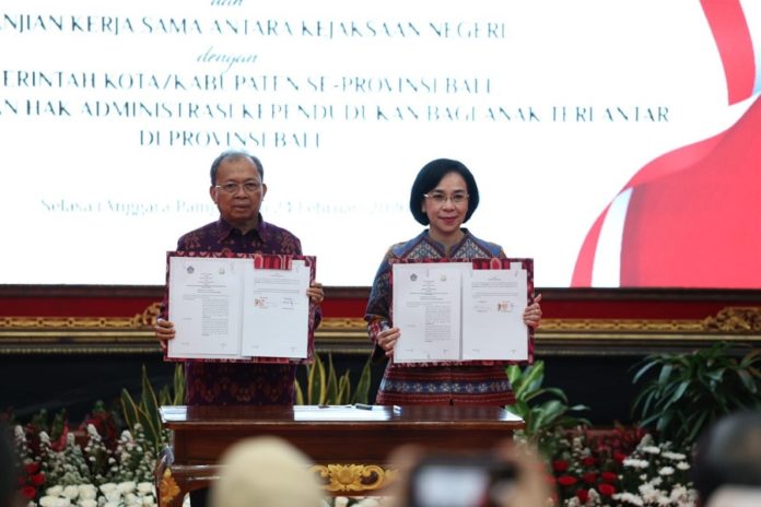 DENPASAR, BALIPOST.com – Gubernur Bali, Wayan Koster mendukung penuh inisiatif Kejaksaan Tinggi Bali dalam pemenuhan hak administrasi kependudukan bagi anak terlantar. Dukungan itu disampaikan Gubernur Koster dalam sambutan pada acara Penandatanganan Nota Kesepahaman (MoU) dan Perjanjian Kerja Sama (PKS) Kejaksaan Tinggi Bali dengan Pemprov Bali dan Pemerintah Kabupaten/Kota tentang Pemenuhan Hak Administrasi Kependudukan Bagi Anak Telantar yang berlangsung di Ruang Wiswa Sabha Utama, Kantor Gubernur Bali, Selasa (24/2) sore.