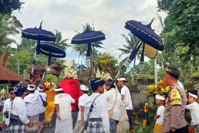 Personel Polsek Mengwi bersama pecalang melaksanakan pengamanan.(BP/istimewa)