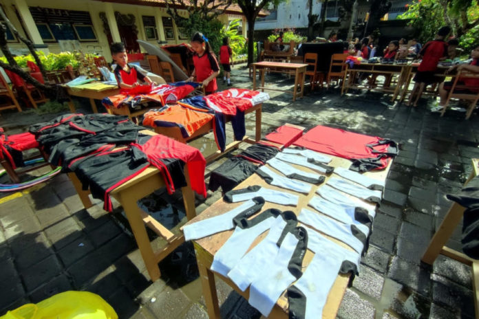 DENPASAR, BALIPOST.com – Banjir yang terjadi di Kota Denpasar membuat beberapa sekolah tergenang. Salah satunya di SDN 18 Sesetan. Untuk bisa melakukan aktivitas belajar-mengajar kembali, siswa bersama guru di sekolah tersebut melakukan bersih-bersih bersama. Beberapa orang tua siswa pun turut membantu.