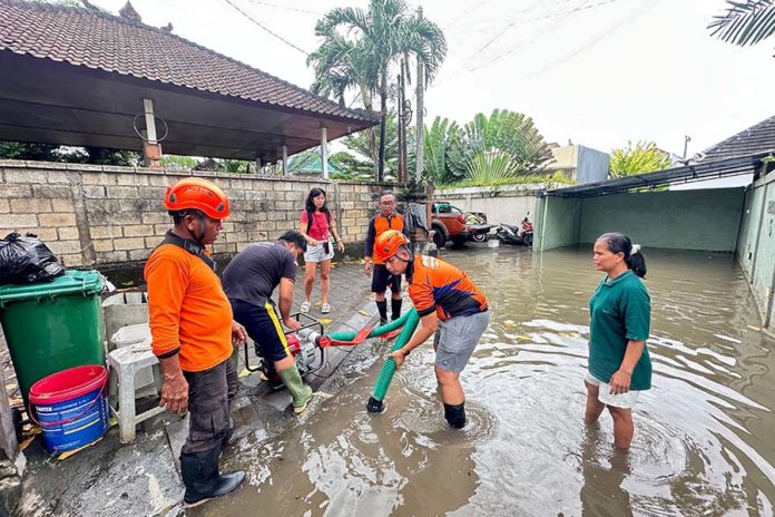 Petugas BPBD sedang menangani banjir di Semawang, Sanur, Denpasar. (BP/Istimewa)