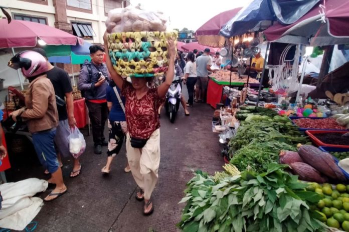 DENPASAR, BALIPOST.com – Jika Anda pergi ke pasar tradisional, akan berjumpa dengan tukang panggul yang menawarkan jasa membawa barang belanjaan. Di Bali, profesi ini disebut tukang suwun yang banyak dilakoni oleh ibu-ibu.