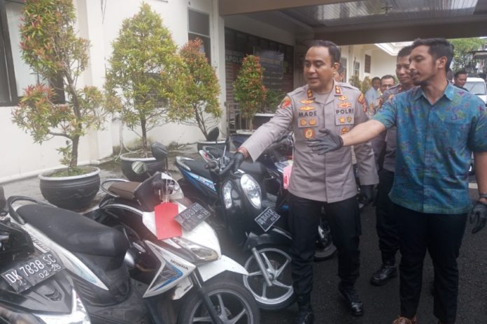 “Dalam kasus ini, kami berhasil mengamankan 16 orang tersangka, yaitu M, R, IWM, H, NB, IWG, KK, KR, MDP, IPAP, ST KPAD, A, IKA, SAA, dan IWS. Dari tangan para tersangka ini, barang bukti yang berhasil disita dari tangan tersangka sebanyak 8 sepeda motor, 2 mobil, 1 laptop, 40 gram emas dan 1 ekor anak sapi,” ucapnya.