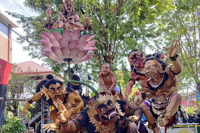 “Ngogo Napak Sithi”, karya ogoh-ogoh ST. Swadharmita yang mengangkat sakralnya prosesi tiga bulanan . (BP/suk)