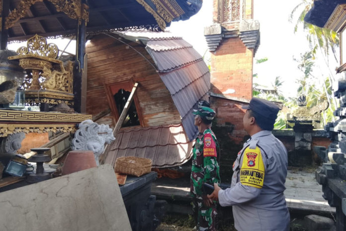 BANGLI, BALIPOST.com – Cuaca ekstrem berupa angin kencang pada Kamis (5/3) mengakibatkan kerusakan di dua pura di Kecamatan Susut. Selain bangunan Bale Gong di Pura Dalem Banjar Lumbuan Kawan, Desa Lumbuan, satu unit palinggih Jineng di Pura Panti Pasek Gelgel Dusun Abuan Kangin, Desa Abuan juga dilaporkan roboh.